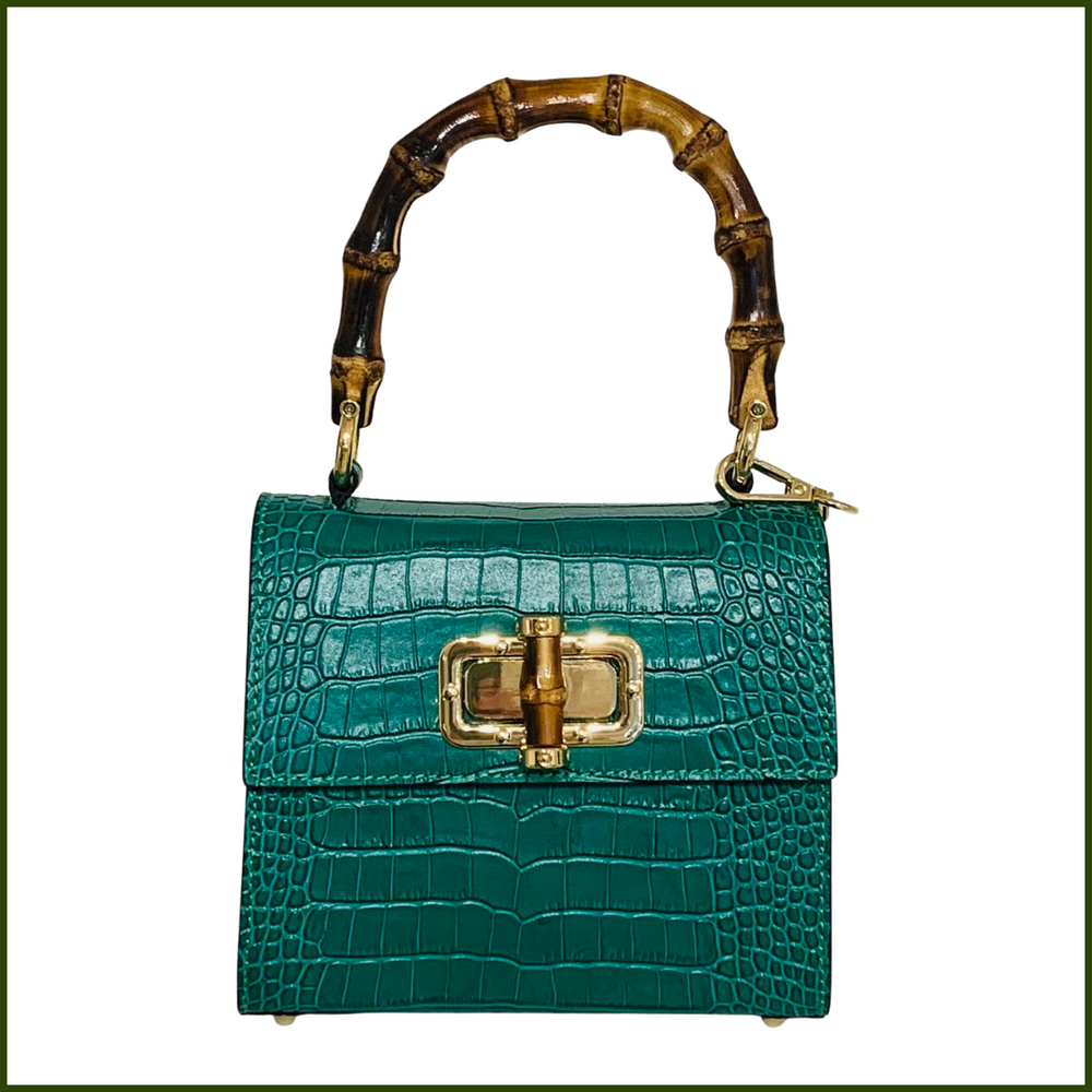 Add Luxury Italian Leather Green Bamboo Handle Handbag to the cart