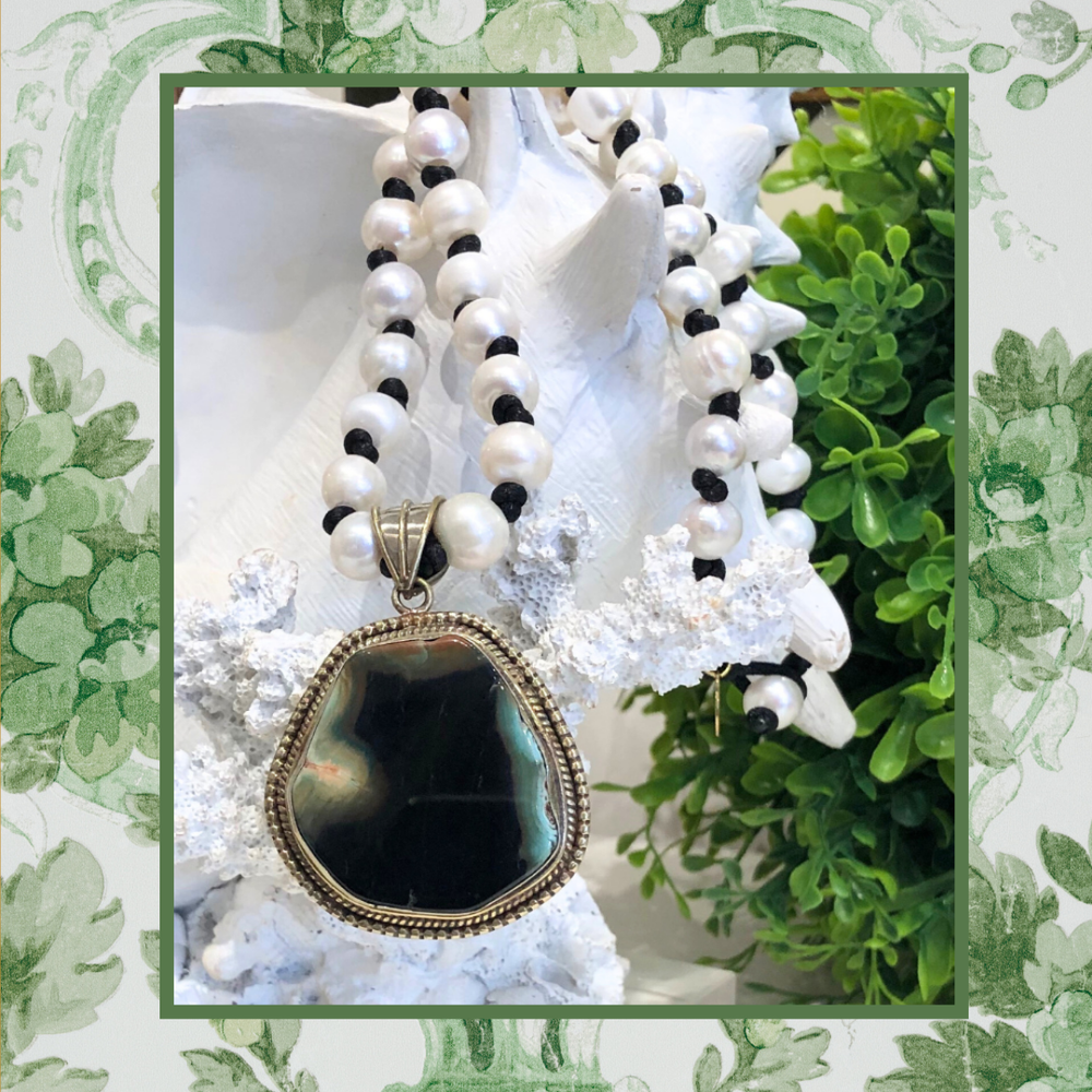 Add One Of A kind Pearl Necklace with Agate Pendant to the cart