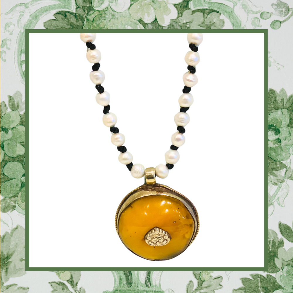 Add Pearls With Hand Knotted Silk Large Amber Necklace to the cart