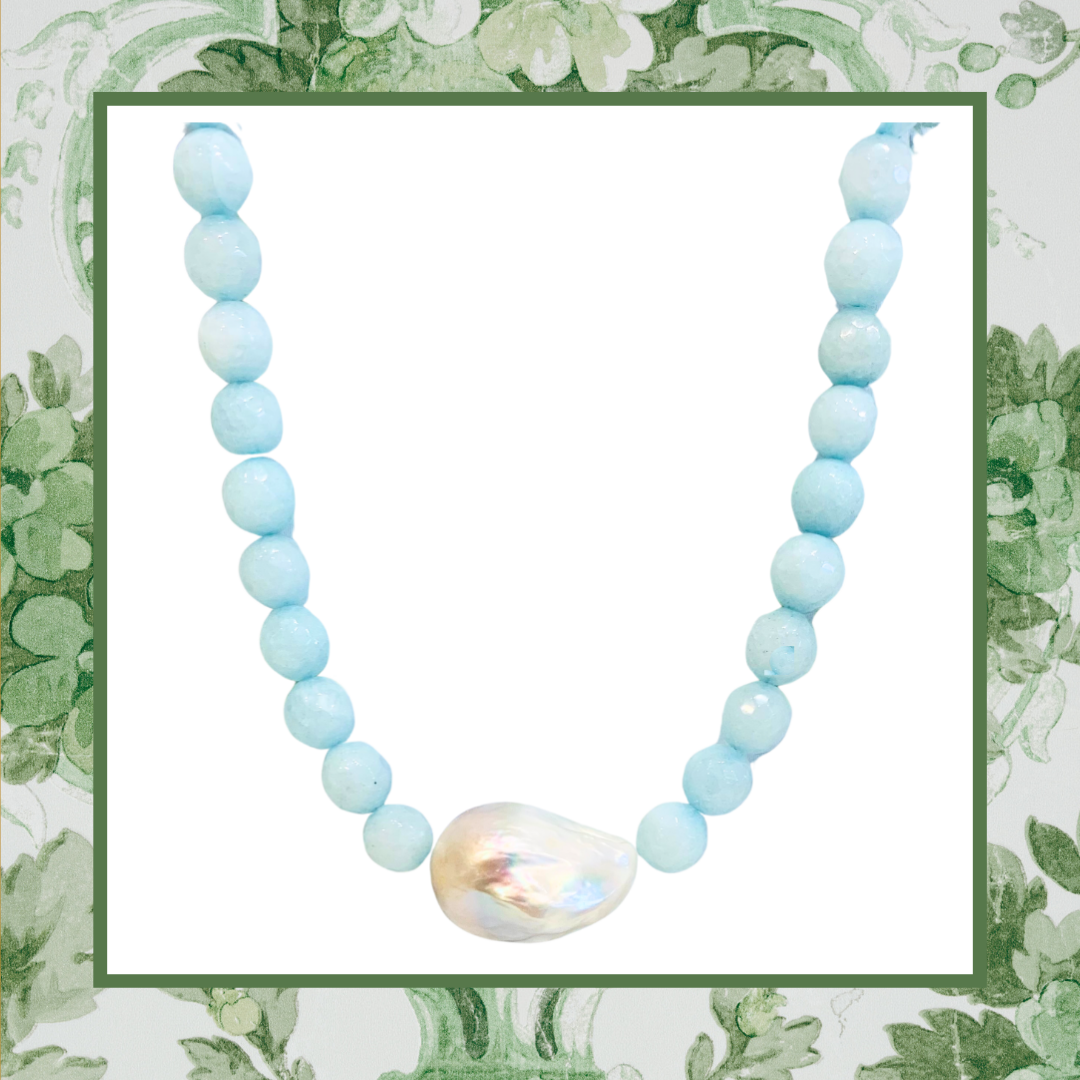 Add Baroque Pearl Faceted Blue Agate Stone Necklace to the cart