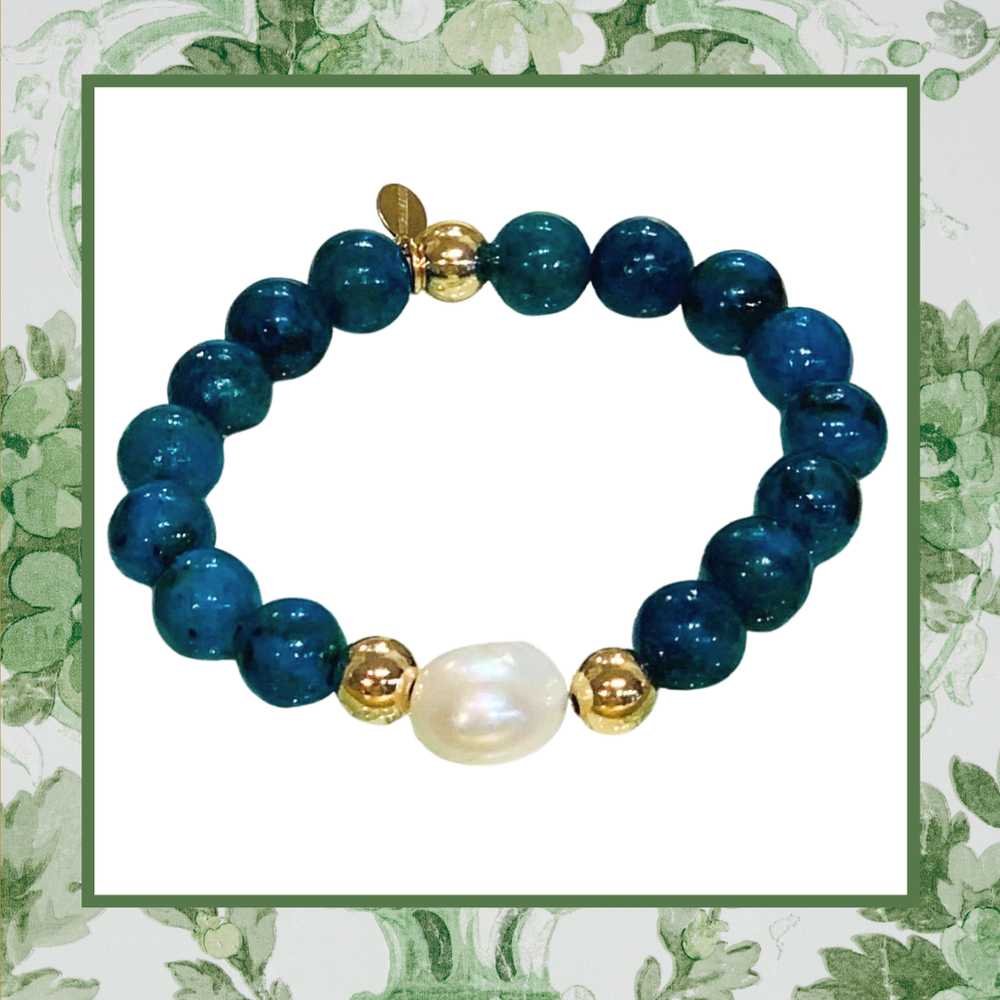 Elevate your jewelry collection with the refined beauty of the Chrysocolla & Pearl Gratitude Bracelet—a statement of quiet luxury and meaningful design. Featuring the rich, oceanic tones of Chrysocolla and the timeless elegance of luminous baroque pearl, this handcrafted piece is part of our exclusive Luxury Gratitude Collection.
